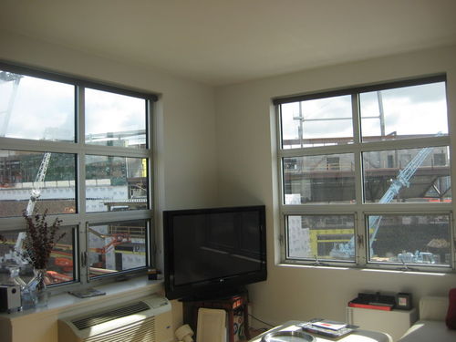 Sometimes the construction on the new stadium across the street is more entertaining than whatever's on TV.